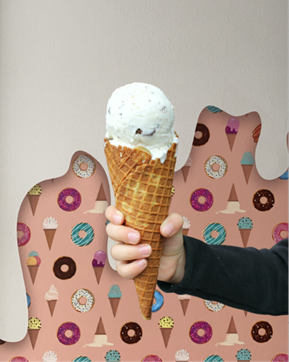 ژلاتوی وانیلی با تکههای کوکی شکلاتی خانگی. قیمت: ۴٫۰۰ دلار در هر قاشق، ۸٫۰۰ دلار به ازای هر پیمانه