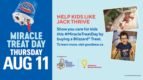Miracle Treat Day یا روز معجزه با همکاری شرکت زنجیرهای بستنی Dairy Queen مانند سالهای گذشته در تلاش است که در روز یازدهم آگوست کمکهای نقدی و عواید فروش بستنی را صرف کودکانی کند که بیمار هستند و برای درمان با مشکلات مالی مواجهاند. مجموعهای که با این هدف فعالیت میکند یک سازمان غیرانتفاعی است که از سال ۱۹۸۴ همکاری خود را با Dairy Queen آغاز کرده و از سال ۲۰۰۶ با عنوان Miracle Treat Day یا روز معجزه بهصورت رسمی فعالیت میکند. این اقدام انساندوستانه چند نوبت در سال در سراسر کانادا برگزار میشود که تاکنون نتایج بسیار خوبی را بهدنبال داشته است.